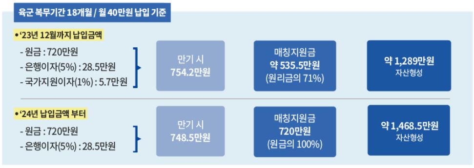 징병내일준비적금의 정부지원금이 24년 인상되었습니다.