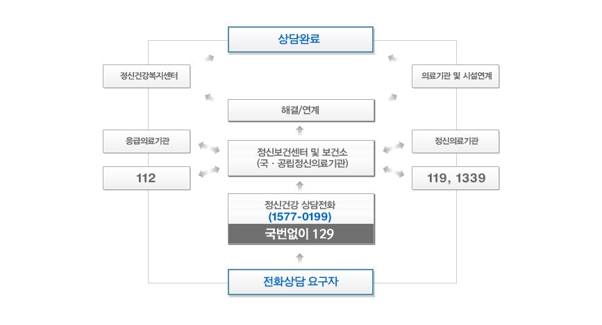 | ■ 전국 어디에서나 전화를 걸면, 시·군·구 별로 정신건강전문요원 등이 자살위기 상담 등 정신건강상담과 지지, 정신건강정보 제공 정신의료기관 등을 안내 |
