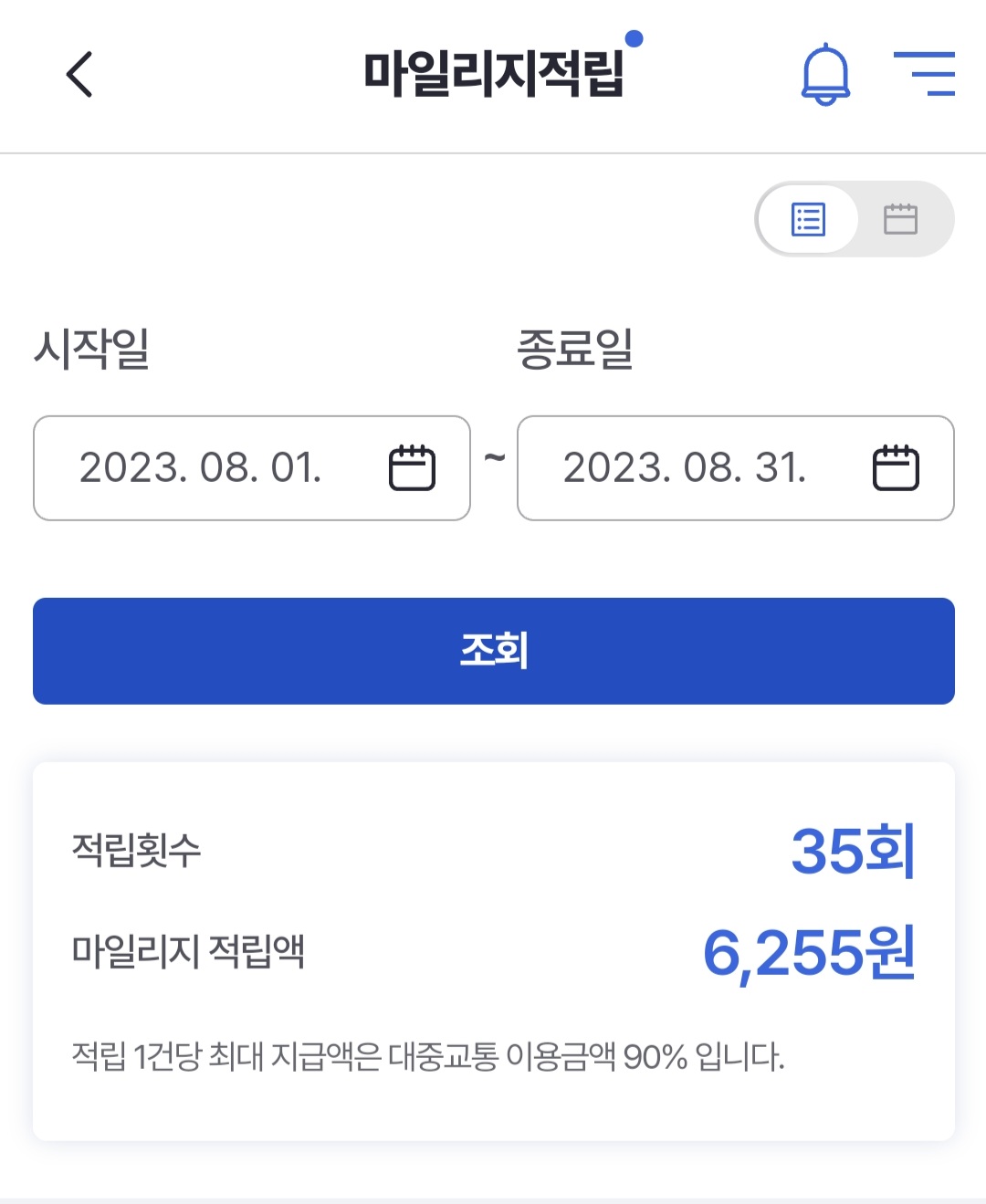 대중교통 적립금액