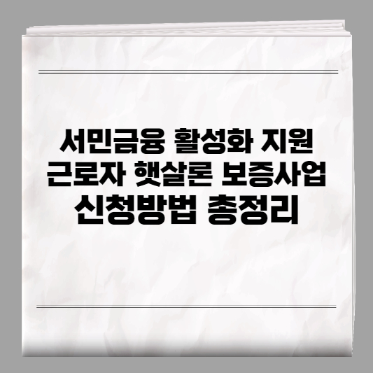 서민금융 활성화 지원(근로자 햇살론 보증사업) 신청방법 및 총정리