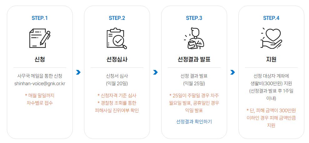 * 단, 피해금액이 1인 최대 지원금 300만 원 이하인 경우 피해금액만큼 지원